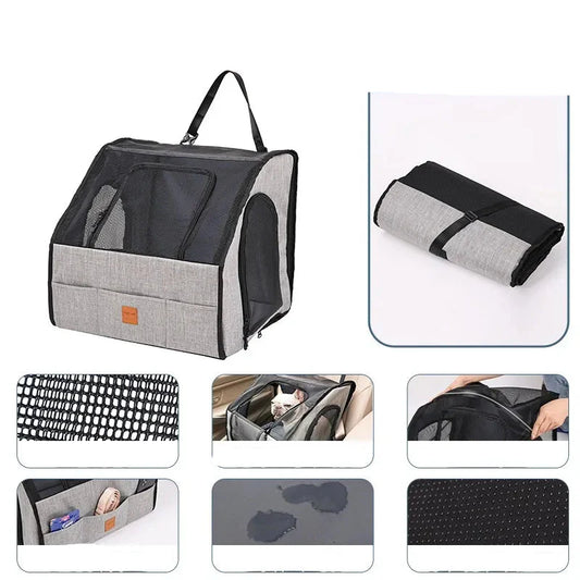 Safe Car Dog Seat β Foldable Pet Carrier with Mesh Windows and Harness System