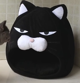 Cat Bed with Cat Head Design - Cozy Den for Cats and Small Dogs