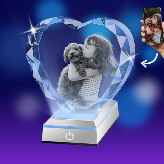Custom 2D/3D Crystal Heart with Laser Engraving and Light