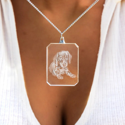 Personalised 2D/3D Photo Crystal Necklace In Square Shape