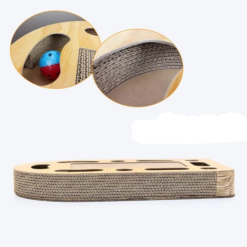 Cat Scratching Board with Toys – Corrugated Cardboard Scratching Mat with Wooden Frame