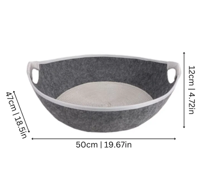 Give your cat maximum comfort and absolute relaxation with our high-quality felt cat bed. With its modern design, practical carry handles, and cozy surface, it will quickly become your pet’s favourite place while adding an elegant touch to your home.