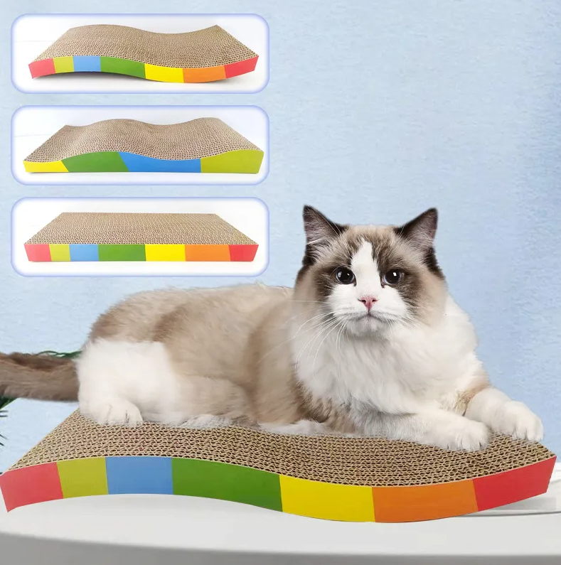 "The scratching post is perfect for my cat – he loves lounging on it while sharpening his claws. Thanks to the sturdy corrugated cardboard, my sofa finally stays intact and looks like new."
