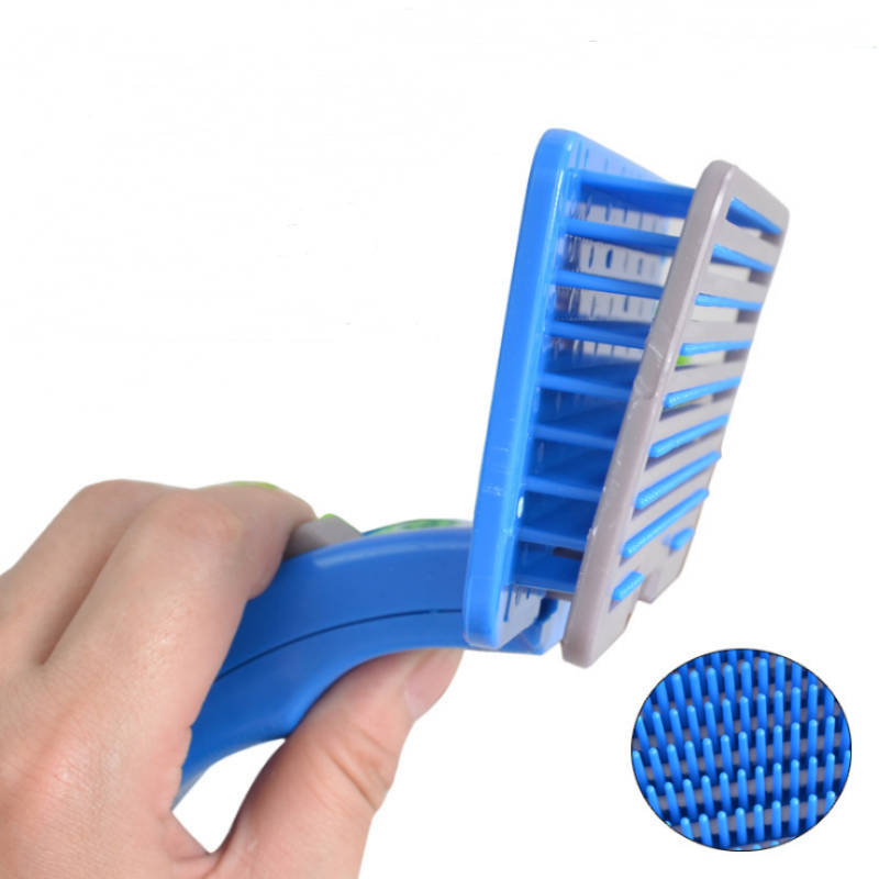 "The plastic pet fur brush is truly a great product—it gently and efficiently detangles my cat's fur. I especially find the ergonomic handle convenient, making grooming enjoyable and effortless."